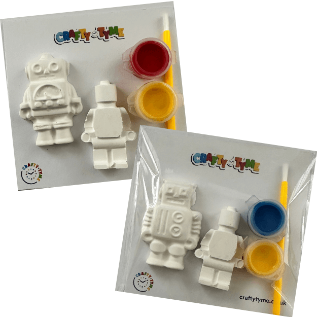 - Includes: 1 brush, 2 assorted paint pots, 2 ornaments
