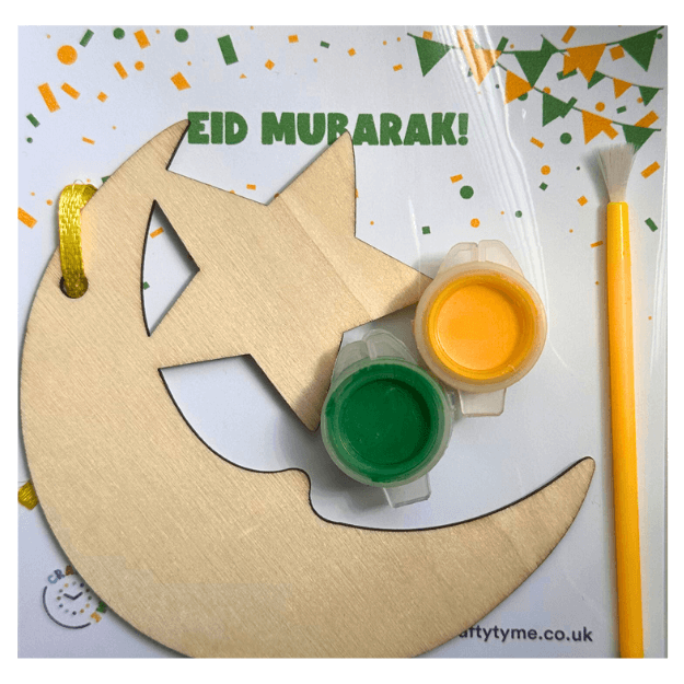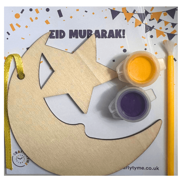 Get ready to add a touch of sparkle and magic to your Eid celebrations with our Hanging Moon & Star Paint Kit! Let your creativity shine as bright as the full moon on this festive occasion.