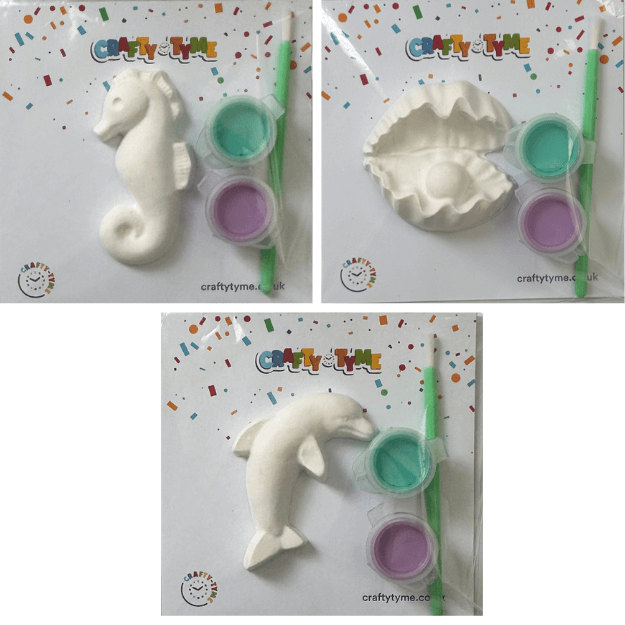 - Includes: 1 paintbrush. 2 paint pots, 2 assorted ornaments