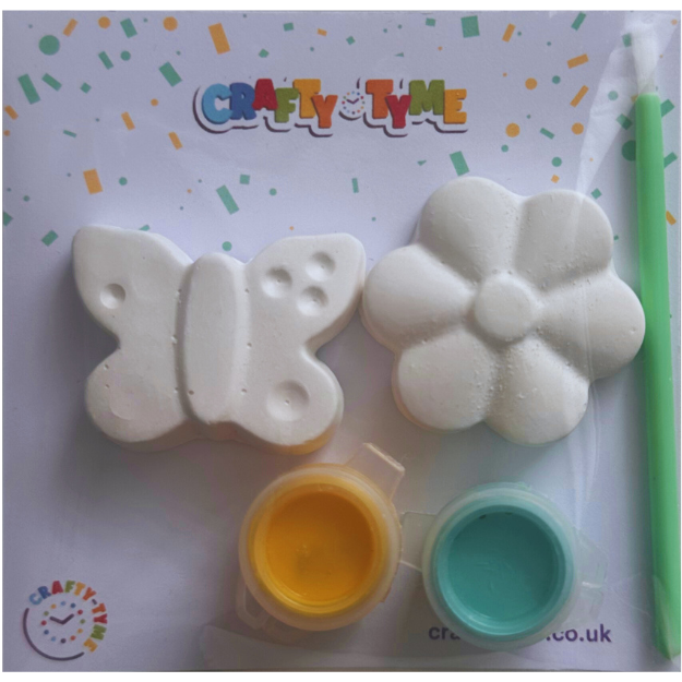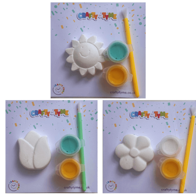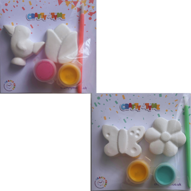- Includes: 1 paintbrush. 2 assorted paint pots, 1 assorted mini ornament 1.5"