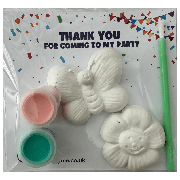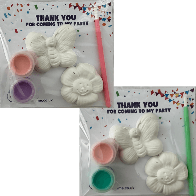 Give your guests a unique and charming party favor with this pastel-themed Butterfly Party Bag. Each kit includes a butterfly and flower to paint — perfect for elegant, nature-inspired party themes.