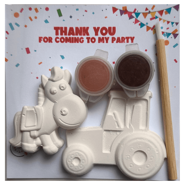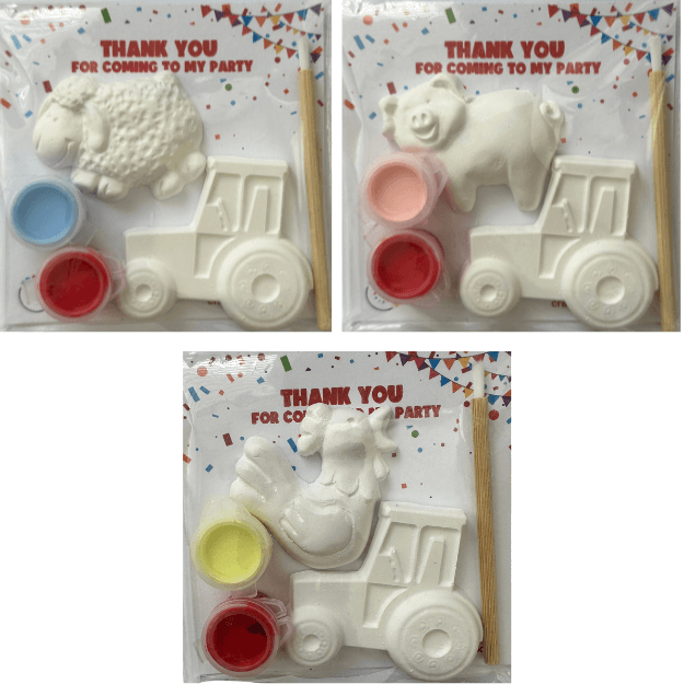 Give your guests a farmyard fun party bag they'll love. Each bag includes an animal and tractor to paint, perfect for farm-themed parties.