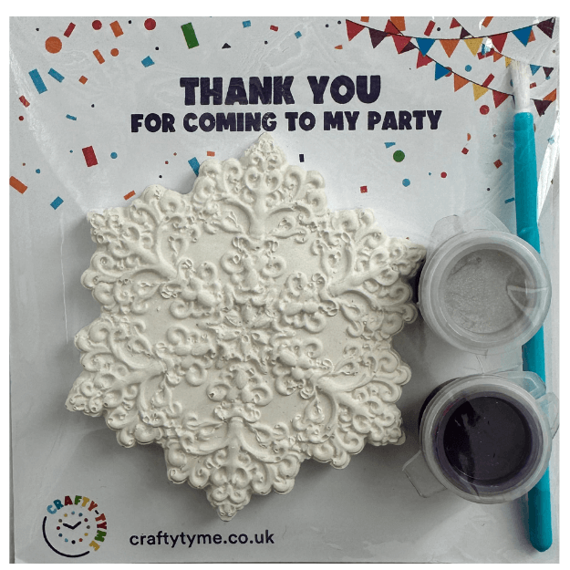 - Includes: 1 paintbrush. 2 assorted colour paint pots, 1 large ornament 2.5"