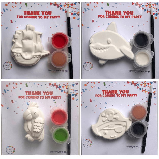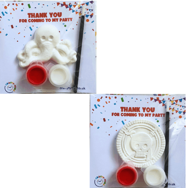 Ahoy there! Give your guests a party bag that pirate fans will love. Each pack includes an assortment of a pirate ornaments to paint - making the perfect gift for pirate-themed parties.
