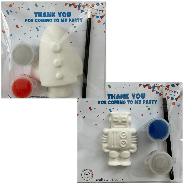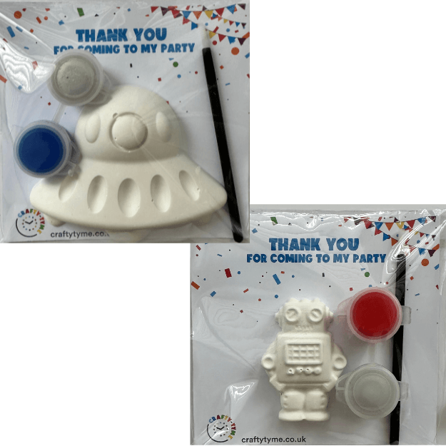 Launch your party to new heights with these arty party favours. Each bag includes one assorted ornament to paint, perfect gift for space themed parties.