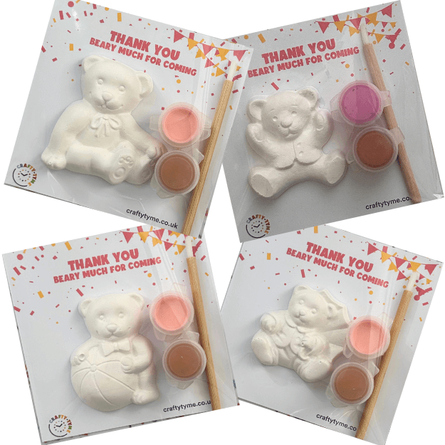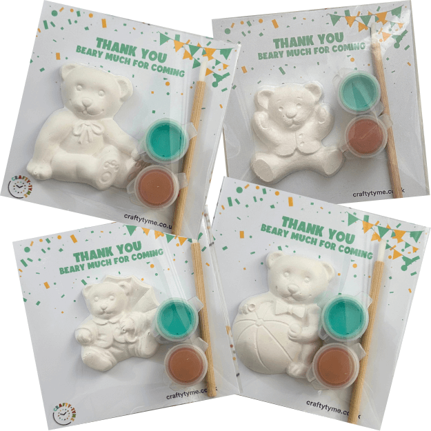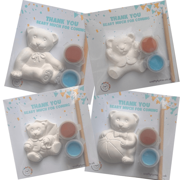 Make your celebration a bear-y good time with our teddy bear party bags. Each adorable and customisable pack includes a teddy bear ornament to paint and display. Perfect way to send your guests home with a smile on their and keepsake in their hands. Whether you're throwing a birthday party, baby shower or even a christening these teddy bear party bags are an affordable option that will delight your guests of all ages.