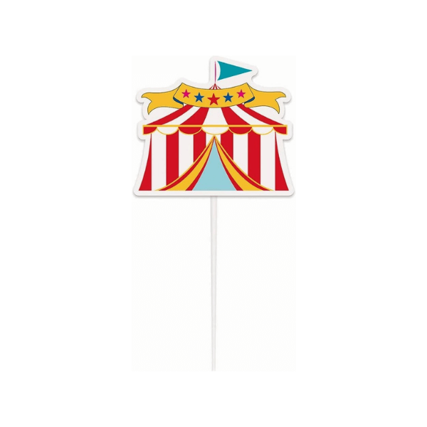 Add a slice of fun to your birthday cake with this circus carnival cake topper.