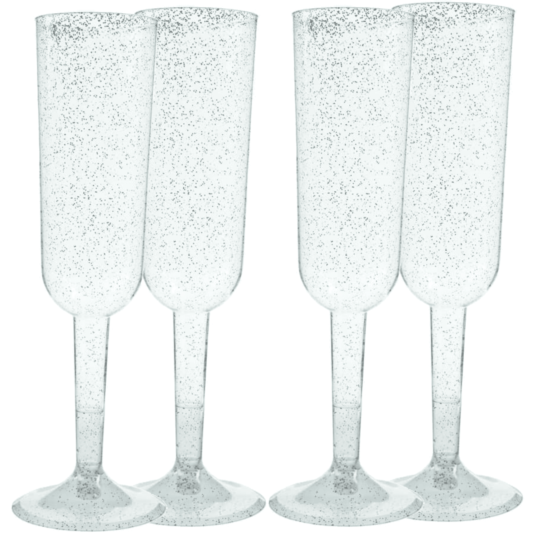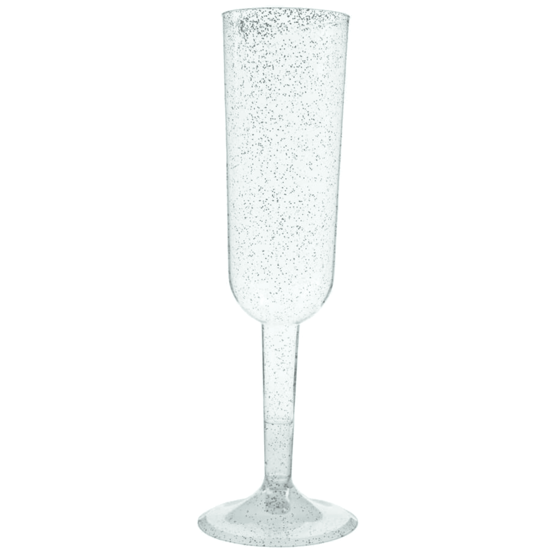 Enjoy any refreshment at birthday, anniversaries, Christmas or new year parties with these silver glittery champagne flutes.